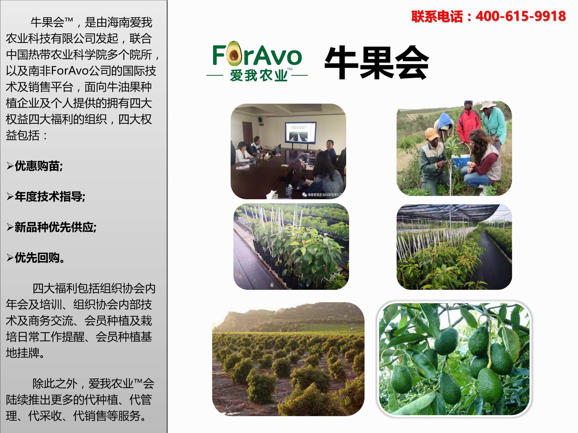 海南愛我農(nóng)業(yè)科技有限公司是一家綜合性的高科技農(nóng)業(yè)發(fā)展企業(yè),旗下愛我農(nóng)業(yè)TM致力于打造中國最大最強的牛油果種植企業(yè)。依托美國、南非、澳大利亞等擁有百年牛油果繁育、種植歷史以及產(chǎn)業(yè)鏈?zhǔn)袌龅膬?yōu)勢,開展牛油果種苗繁育、種植技術(shù),種植加盟、深加工等產(chǎn)業(yè)。結(jié)合中國市場,面向廣大苗圃基地、種植農(nóng)場、合作加工等企業(yè),推出的適合規(guī)?;?、標(biāo)準(zhǔn)化的牛油果全產(chǎn)業(yè)鏈服務(wù)。 Hainan Foravo Agricultural Technology Co., Ltd. is a comprehensive high-tech agricultural development enterprise , dedicated to building the largest and most powerful avocado plantation enterprise in China. Relying on the advantage of avocado nursery, planting history, and the industrial chain over 100 years in the United States, South Africa, Australia, we are carrying out nursery, planting, proce...